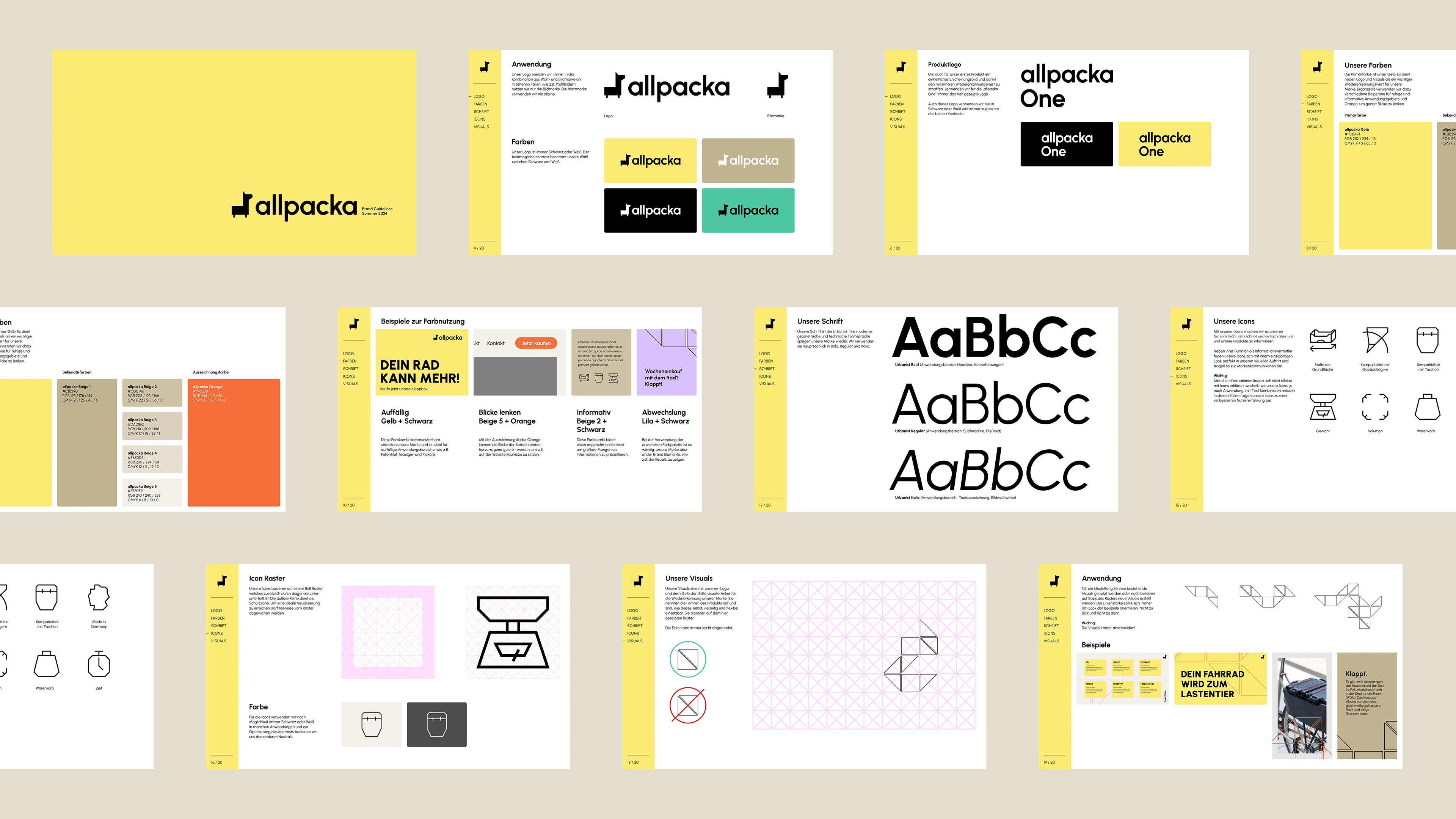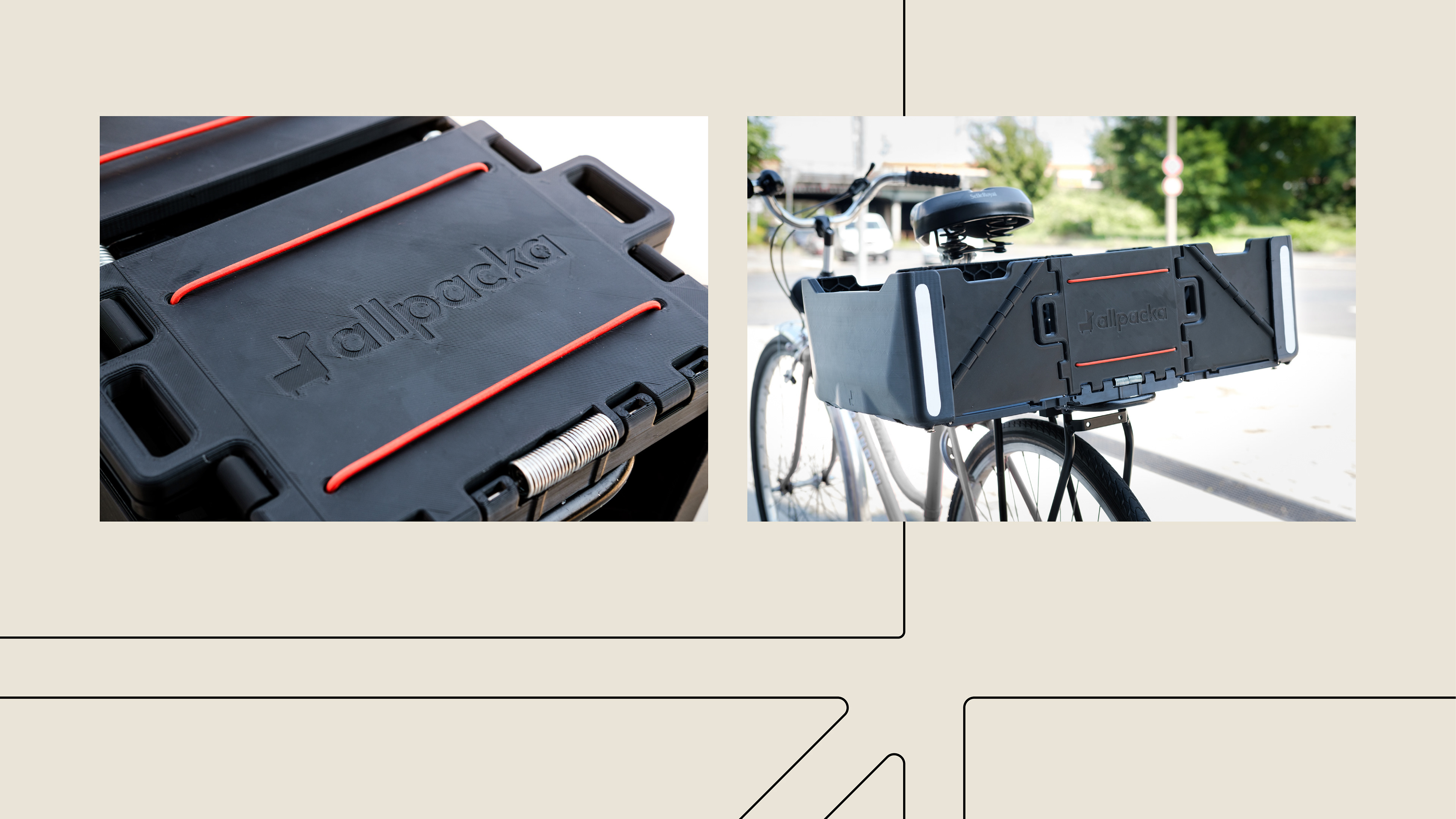 Visueller Auftritt für allpacka. Das clevere Startup hat die erste klappbare Lastenbox fürs Fahrrad entwickelt.