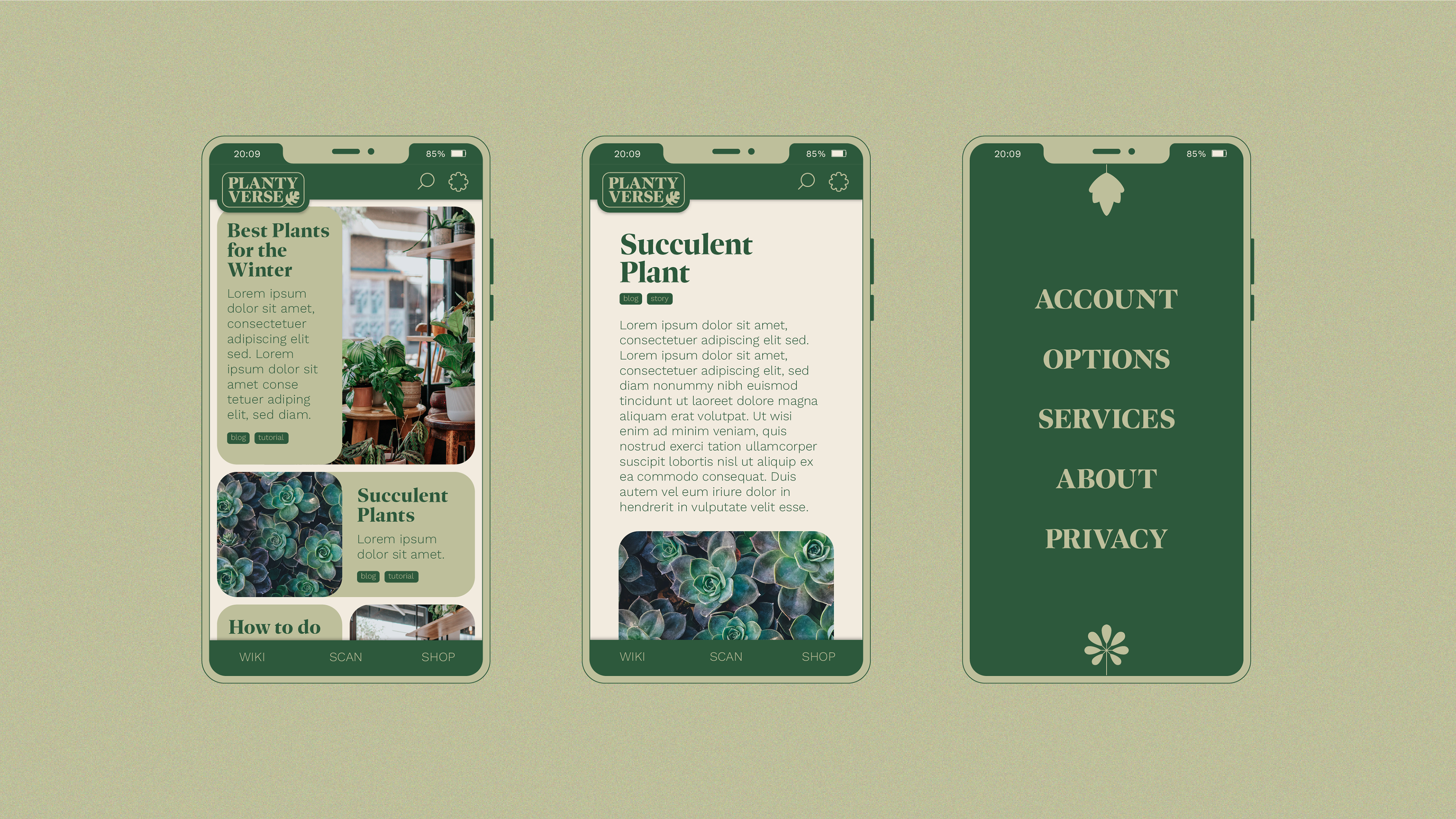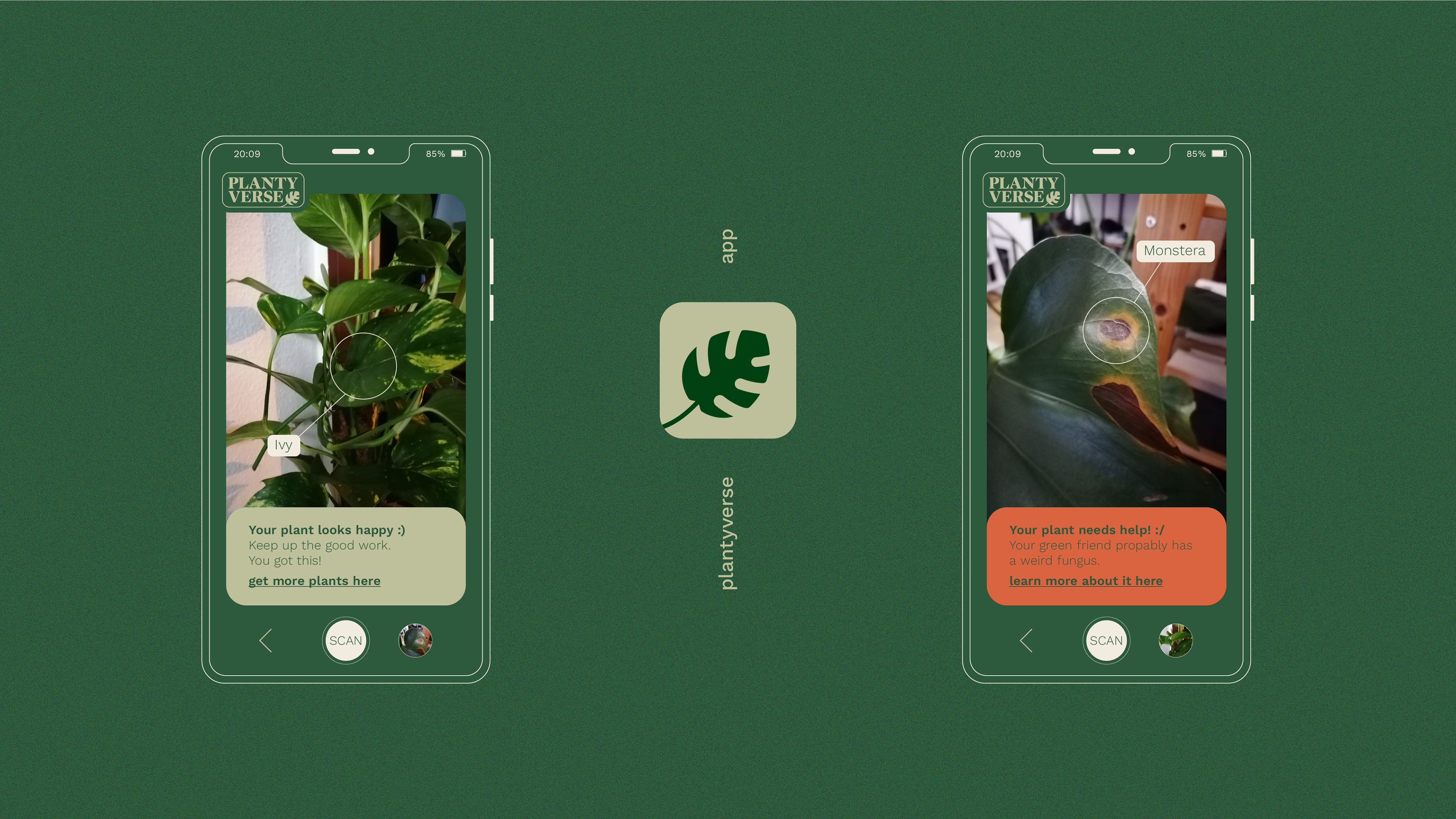Plantyverse ist eine fiktive Platform für Pflanzenliebhaber. In der App können sich die Nutzer austauschen, Artikel lesen und ihre kranken Pflanzen mit der AI-Kamera analysieren lassen.