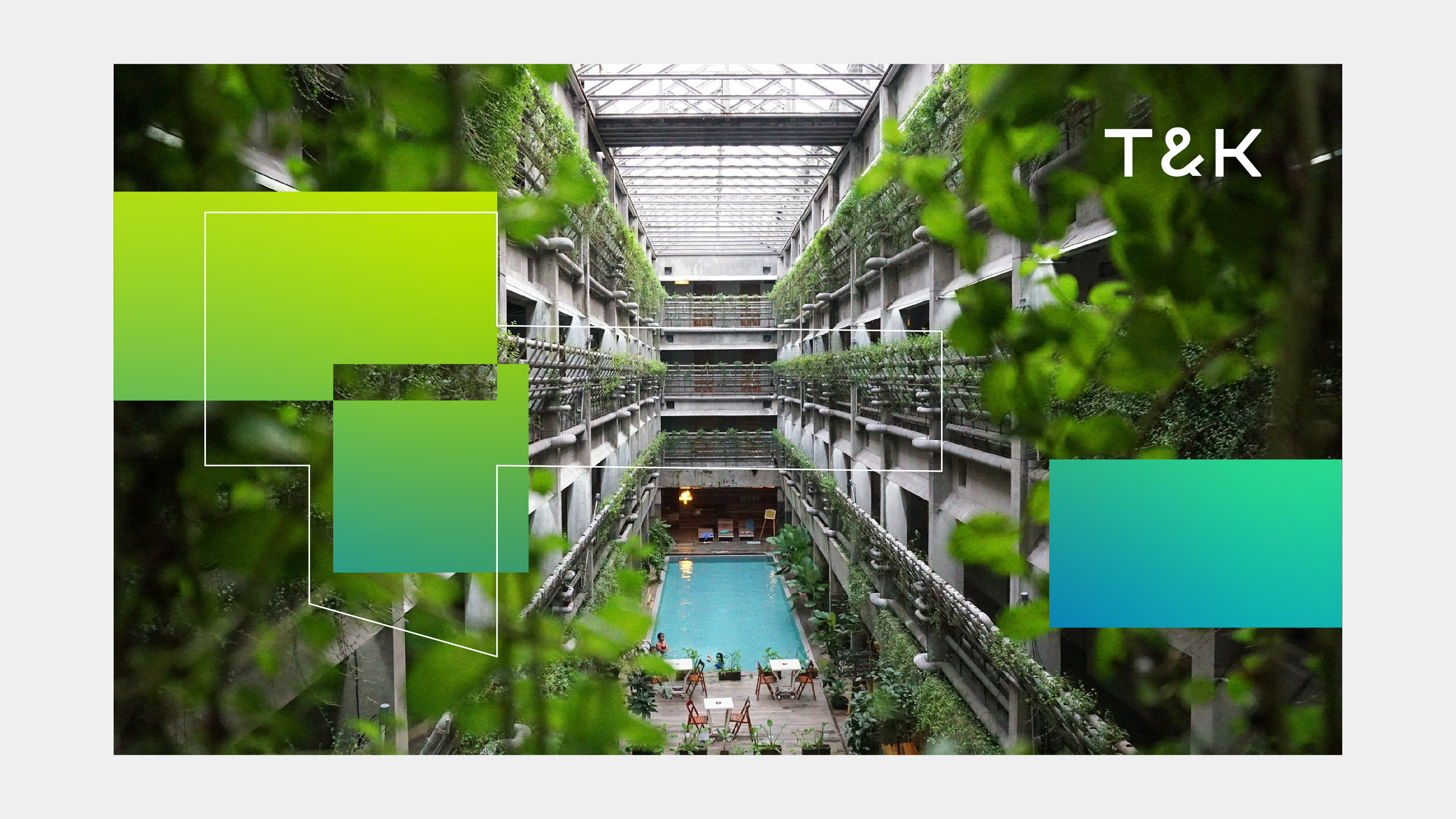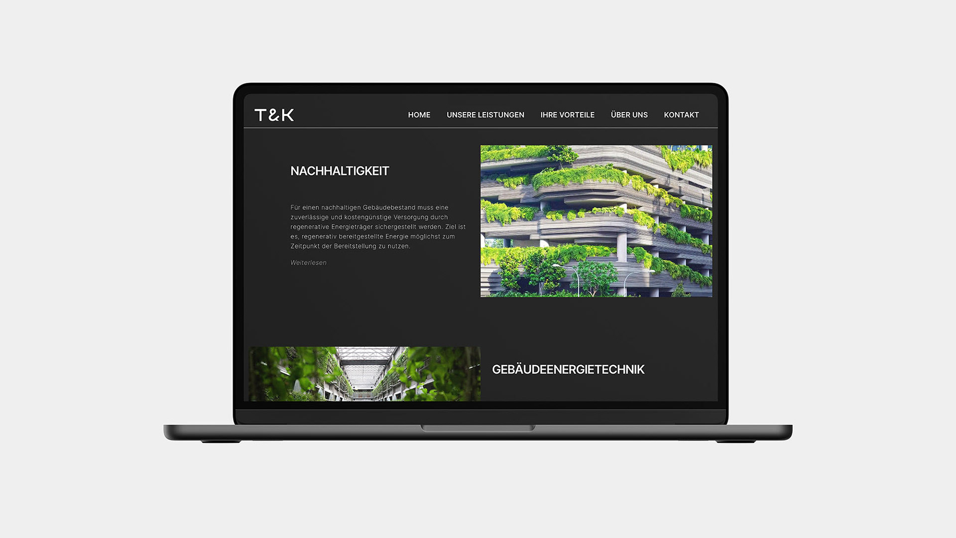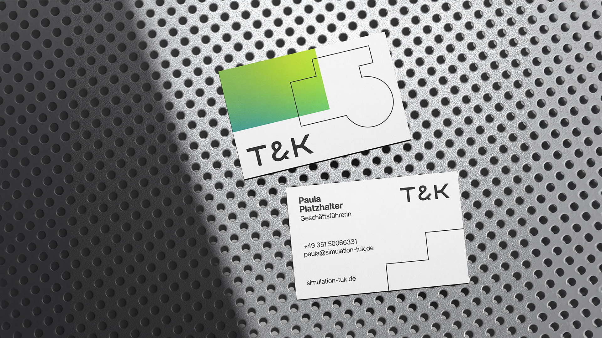 Visueller Auftritt für T & K, der die dynamischen und technischen Qualitäten des Unternehmens zeigt. T & K hilft Kunden durch komplexe Gebäudesimulationen ihre Bauprojekte zu optimieren.